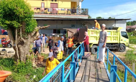Pengangkutan Sampah dilokasi penyaringan Sampah Sungai Karang Asam Besar di Gg. Taqwa RT. 28 oleh armada pengangkut Sampah DLH Kota Samarinda, Diterima Oleh Kasi Ekobang Kel. Lok Bahu .Kamis 24/03/22
